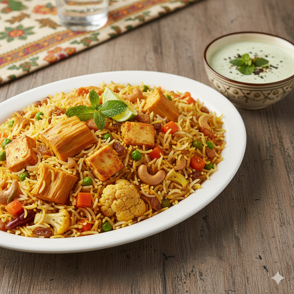 Mughlai Biryani (Jackfruit / Kashmiri Paneer) with Borhani